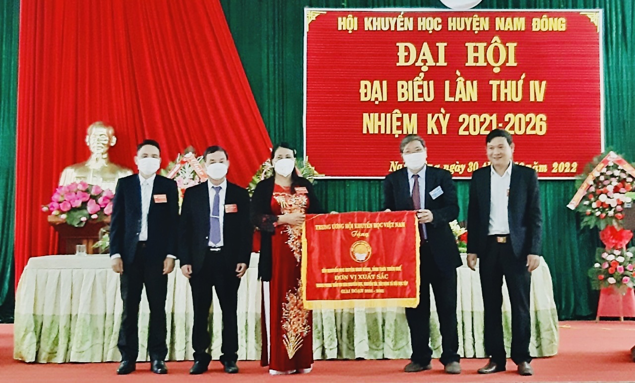 Hội Khuyến học huyện Nam Đông nhận cờ thi đua Đơn vị xuất sắc tại Đại hội Đại biểu lần thứ IV nhiệm kỳ 2021-2026. Ảnh: NVCC